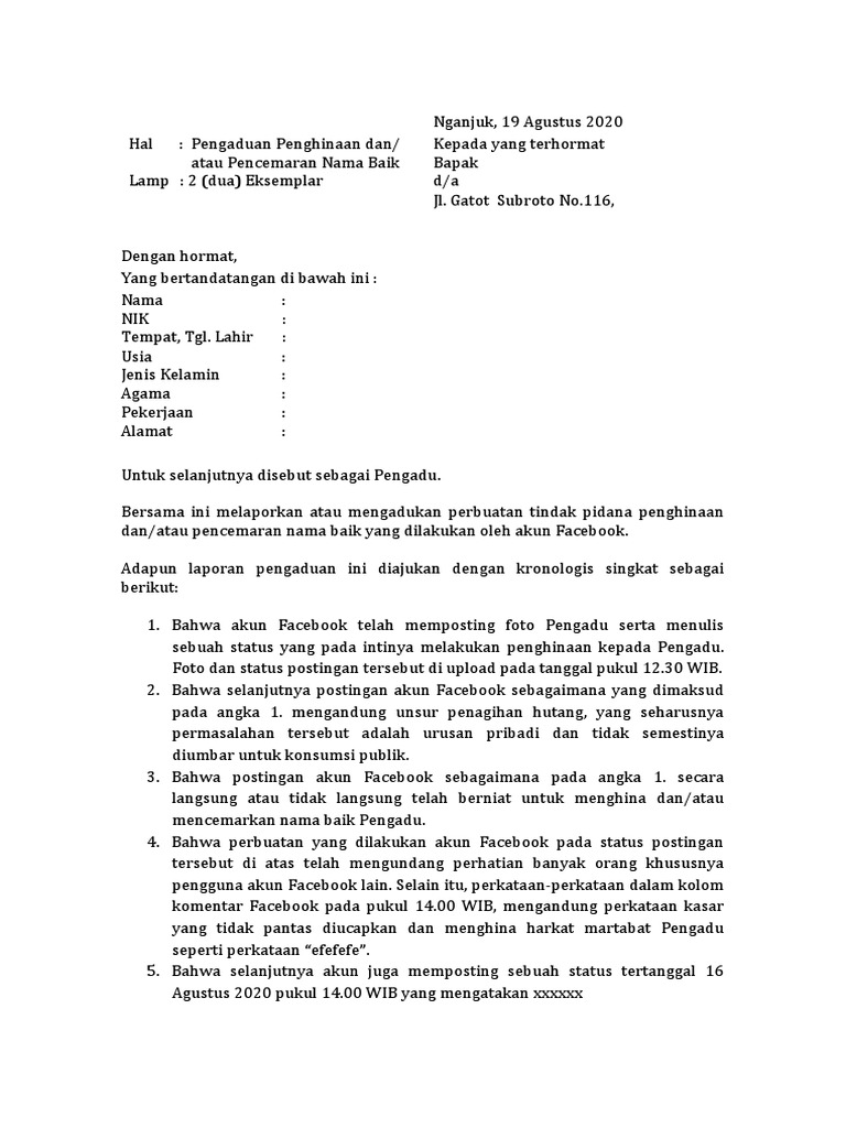 9 Contoh Surat Laporan Pencemaran Nama Baik Ke Polisi Pdf Doc